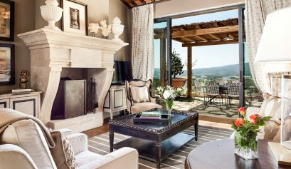 Staying in an original and authentic structure, dating back to the 10th century, offers you a variety of experiences. You can choose between the Classica suites with exposed stone walls, wooden beams, and mosaic-tile bathroom floors, or the Oliveto suites, whose mod aesthetics employ sleek greys and blues, travertine floors and brushed nickel, and look out over the estate’s olive groves. How stunning is this hotel interior design?