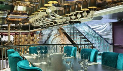Combining the elegant use of color and texture, the interior design of this restaurant is magical, glamorous and sophisticated, yet cozy and welcoming at the same time. The slightly over-the-top and eclectic interior decor can take us back to the days of Jules Verne and Gustave Eiffel.