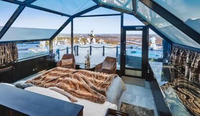 The Golden Crown Hotel has up to 18 glass igloos with adjustable headrests on the beds for enhanced northern lights – the aurora borealis – viewing. The windows are insulated and heated up to keep from frosting. Guests can choose from Suite Igloos (with an outdoor jacuzzi and private terrace) to Prime Superior Igools, which has stunning views of the valley, or even the Superior Igloo.